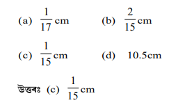 প্রশ্নঃ 3cm ব্যসার্ধযুক্ত তামৰ গোলক এটা গলাই 0.2cm ব্যাসযুক্ত তাঁৰত পৰিণত কৰা হ’ল। তাঁৰডালৰ দৈৰ্ঘ্য হ’ব-