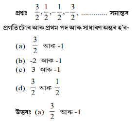 প্রশ্নঃ 4. 3, 8, 13, 18, ………. সমান্তৰ প্রগতিটোৰ কোনটো পদ 78?