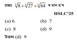প্রশ্নঃ যদি এটা বৃত্তৰ পৰিসীমা আৰু কালি সাংখ্যিকভাবে সমান হয়, তেন্তে বৃত্তটোৰ ব্যাসার্ধ হ’ব- HSLC’25