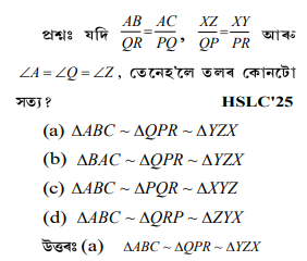 প্রশ্নঃ এটা ট্রেপিজিয়ামৰ কালি 1350 m² আক ইয়াৰ সমান্তৰাল বাহুবোৰৰ দীঘৰ সমষ্টি উচ্চতাৰ তিনিগুণ হ’লে, উচ্চতা হ’ব HSLC ’24