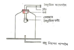 উত্তৰঃ বায়ুৰুদ্ধ বেলজাৰ এটা লৈ ভিতৰত এটা বৈদ্যুতিক ঘণ্টা ওলোমোৱা হয়। বেলজাৰটোত এটা বায়ু নিষ্কাশন নলী সংযোগ কৰা হয়। বেলজাৰৰ মুখখন এটা কৰ্কৰ দ্বাৰা বন্ধ কৰি লোৱা হয় যাতে