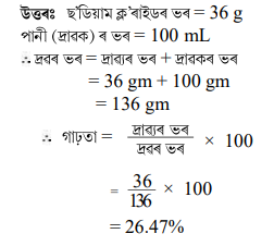 উত্তৰঃ দ্ৰৱণবোৰ হ’ল- (b) সাগৰৰ পানী, (c) বায়ু, (c) ছ’ডা পানী।