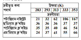 (d) লৱণৰ দ্ৰৱণীয়তাৰ ওপৰত উষ্ণতাৰ প্ৰভাৱ ব্যাখ্যা কৰা।
