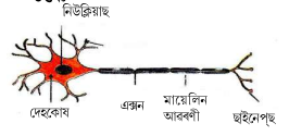 উত্তৰঃ নিউৰণ বা স্নায়ুকোষ দেহকোষ আৰু স্নায়ু প্ৰৱৰ্ধৰে গঠিত। দেহকোষত নিউৰণৰ কোষকেন্দ্র থাকে। কোষকেন্দ্ৰৰ চাৰিওফালে ঘন কোষপ্রৰস থাকে প্রত্যেক নিউৰণৰ স্নায়ু প্ৰৱৰ্ধৰ পৰা দুডাল বা তাতোধিক সূতাৰ নিচিনা প্রৱর্ধ ওলাই থাকে।