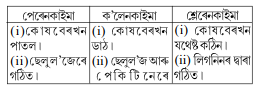 উত্তৰঃ ছাল- চটীয়া আৱৰণী কলা। অস্থি- কংকাল কলা। বৃক্কৰ আৱৰণী- চিলিয়াযুক্ত আৱৰণী কলা।