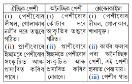 12. গঠন আৰু অৱস্থানৰ ওপৰত ভিত্তি কৰি বেখিত পেশী, অৰেখিত পেশী আৰু হৃদপেশীৰ মাজত পার্থক্য নির্ণয় কৰা।